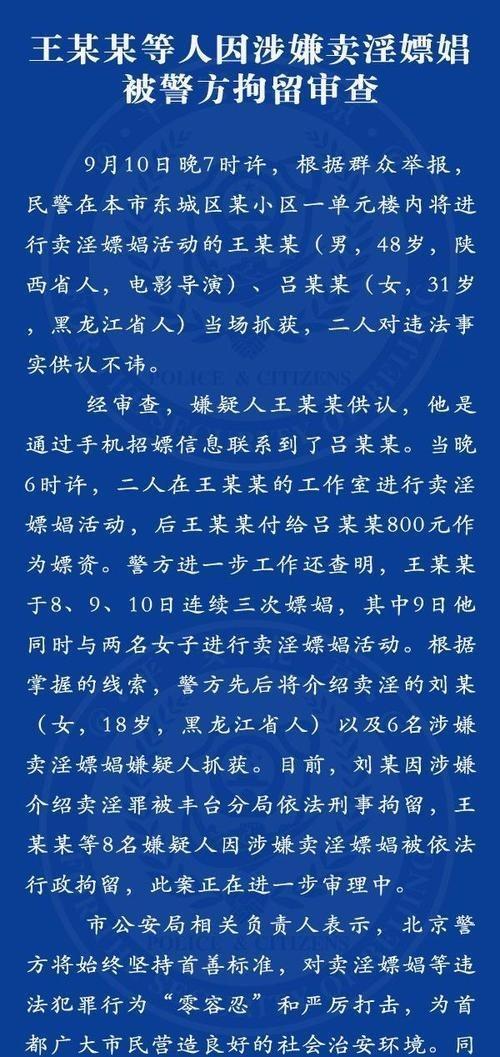 2014年9月10日晚7时许,根据群众举报,民警在北京市东城区某小区一单元楼内,将正在进行卖淫嫖娼活动的王全安和一名31岁黑龙江籍女子当场抓获。警方后续的调查结果更加令人咋舌——王全安于8日、9日、10日连续三次嫖娼,其中9日他同时与两名女子进行卖淫嫖娼活动。王全安付给吕某某800元作为嫖资。整件事经媒体证实后,舆论一片哗然。